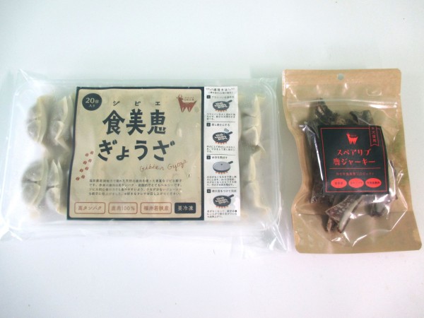 25年1月には、ギョーザ製造会社と連携し「わかさ食美恵(じびえ)ぎょうざ」を開発。肉はシカだけを使用し、町特産のシイタケを合わせる事で豊かな風味を引き出す。他にも七味唐辛子を効かせたモモ、ロース肉のジャーキーを製造。酒に合うと好評だ。さらにペット用ジャーキーも開発した。