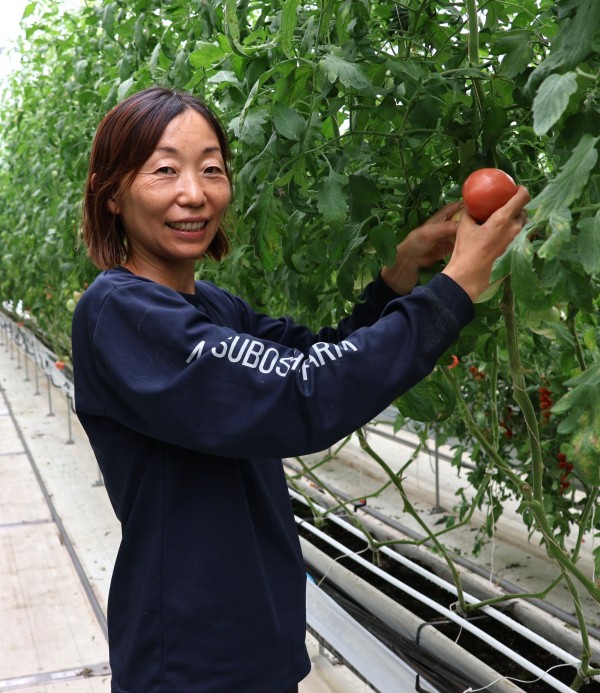 「商品の健康価値を伝えるには、機能性の表示が一番伝わりやすいと思った」と話すのは、冨田美和代表取締役(47)。同社は2018年に設立、翌年から50㌃10連棟のハウスで大玉トマトの栽培に取り組む。現在はトマトのほかに、露地で白ネギ8・8㌶、水稲1・8㌶も手がける。
