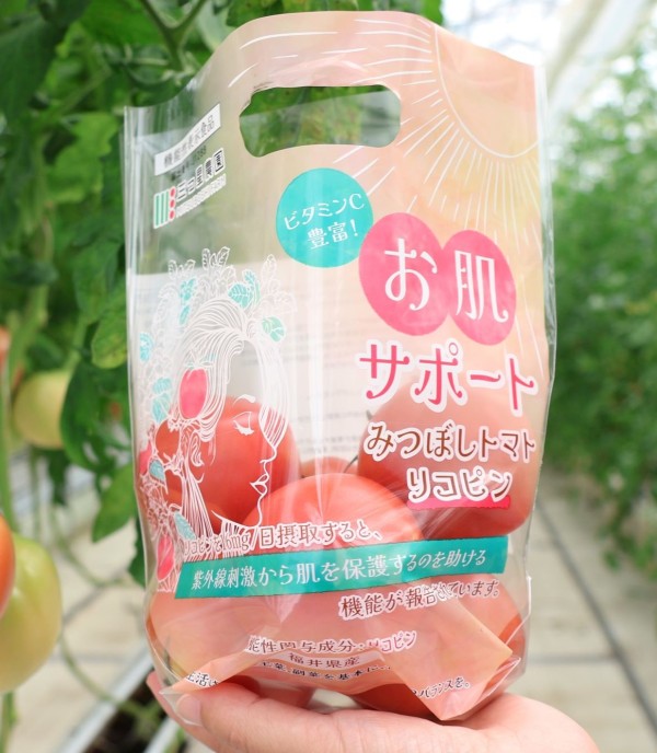 坂井市坂井町の三つ星株式会社は、栽培する大玉トマトで機能性表示食品を取得した。女性をターゲットに、紫外線刺激から肌を守る「リコピン」と、疲労感の軽減に関与する「クエン酸」の機能性を表示した2商品。県内の生鮮食品では事業者として初だ。現在リコピンは販売しており、クエン酸は9月中旬から販売を予定する。