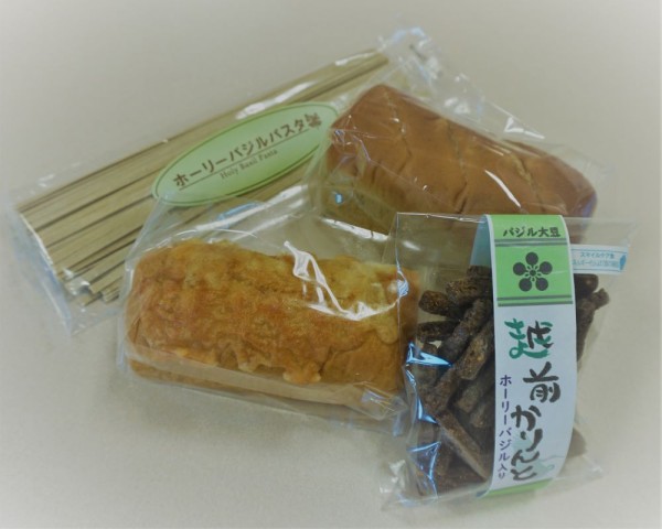 現在、福祉施設と連携して選果作業などを依頼。今年はホーリーバジルを使ったパンの開発にも協力を得て、10月に開かれた「越前ふくいマルシェ」で販売した。戸川さんは「イベントではパンのほか、パスタ、お茶などにも多くの人が興味を持ってくれた」と笑顔を見せる。