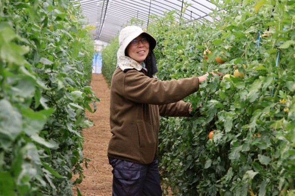 写真:トマトは暑さで実割れしにくい「麗月」を導入。「4年目で、満足のいく出来になりました」と長田さん。